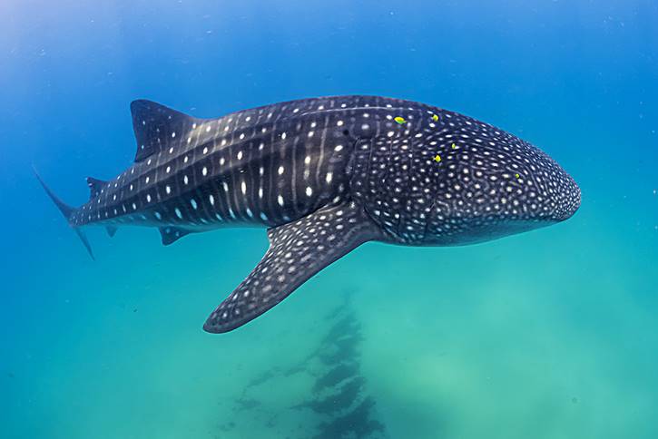 Por supuesto, la búsqueda de tiburones era uno de los objetivos del viaje, y… no son pocas las especies que hemos visto, tiburón ballena, tigre, cebra, puntas plateadas, toro, martillo, además de algunas mantas, mobulas y delfines.